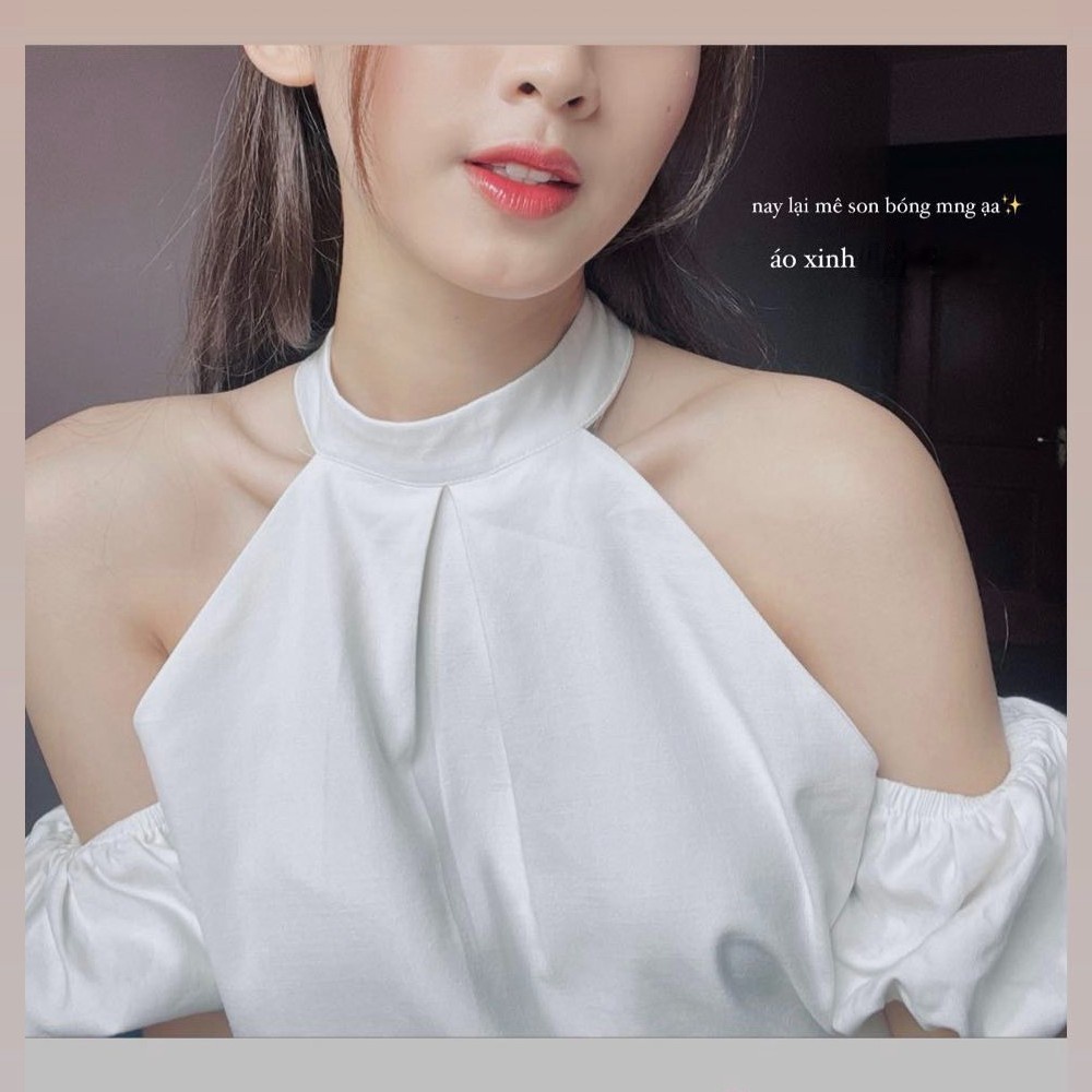 Freeship- Áo hở vai cổ yếm 2 lớp – Áo trễ vai tay bồng chất linen – Croptop kiểu eo bo chun A-CY mua tại đây